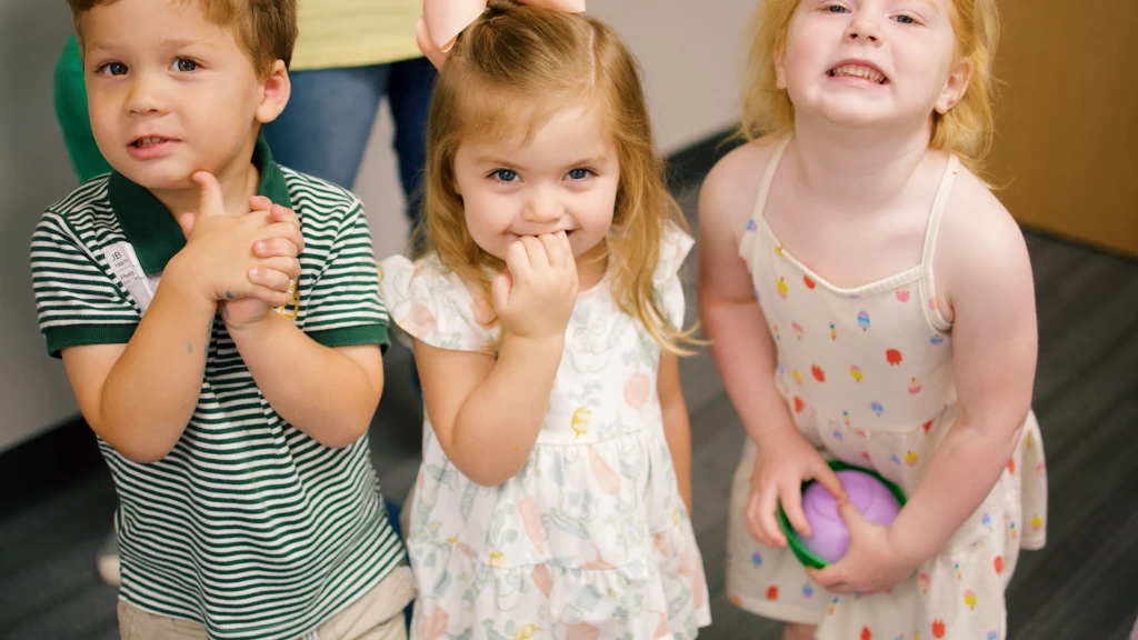 Bible story lessons are taught each week. Children hear the story together with friends, and then they participate in engaging centers and games to reinforce the learning. During this hour of worship, children have choice and small group instruction time.